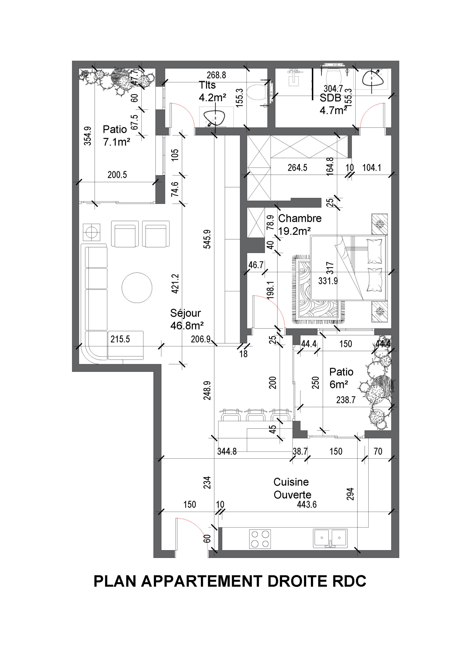 Appart F2 RDC Droite